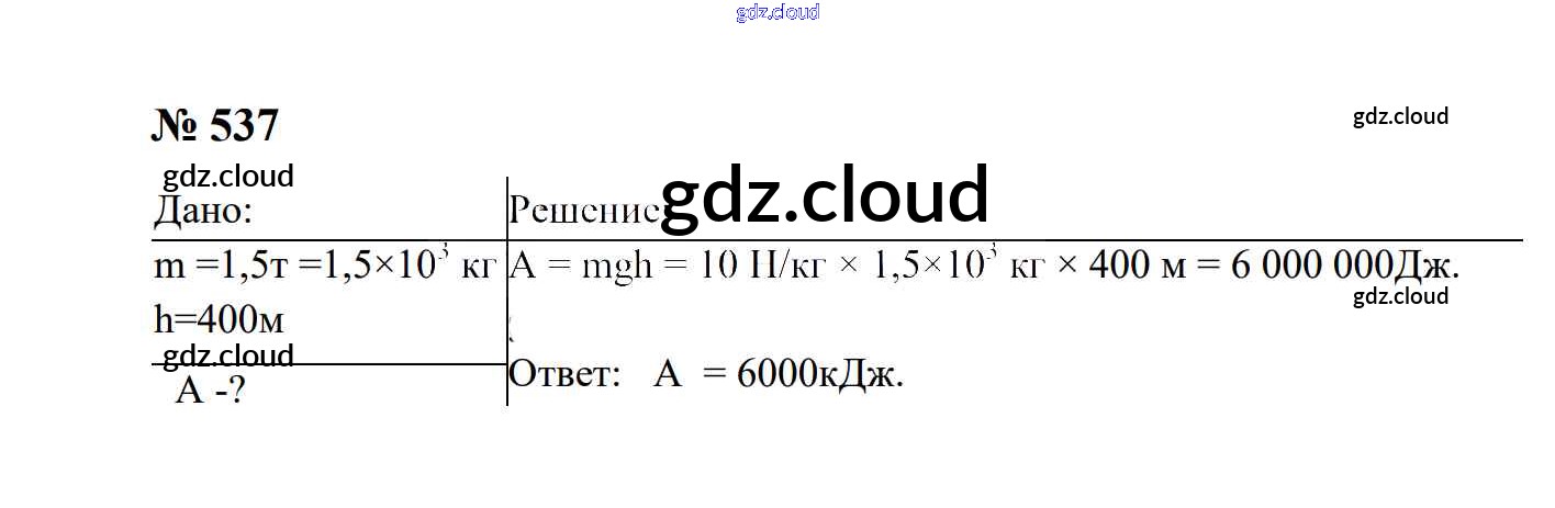Ответ на задание 537 Сборник задач Физика за 7, 8, 9 (седьмой, восьмой, девятый) класс Перышкин, Лонцова УМК 2016