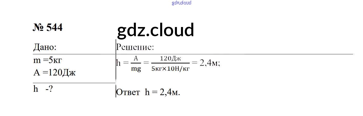 Ответ на задание 544 Сборник задач Физика за 7, 8, 9 (седьмой, восьмой, девятый) класс Перышкин, Лонцова УМК 2016