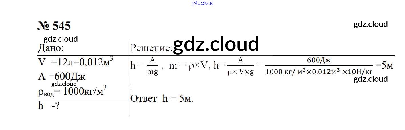 Ответ на задание 545 Сборник задач Физика за 7, 8, 9 (седьмой, восьмой, девятый) класс Перышкин, Лонцова УМК 2016