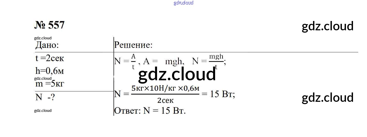 Ответ на задание 557 Сборник задач Физика за 7, 8, 9 (седьмой, восьмой, девятый) класс Перышкин, Лонцова УМК 2016