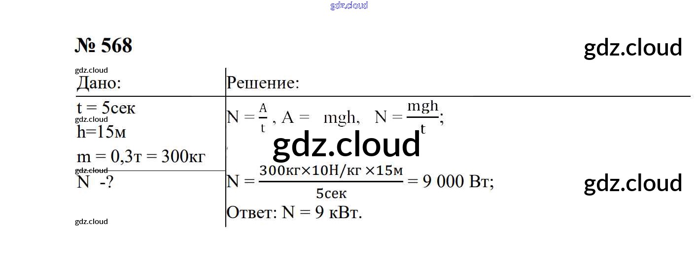Ответ на задание 568 Сборник задач Физика за 7, 8, 9 (седьмой, восьмой, девятый) класс Перышкин, Лонцова УМК 2016