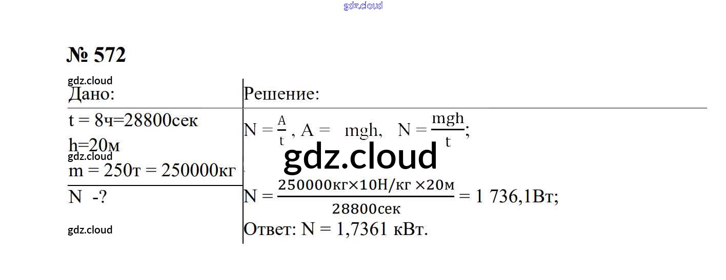 Ответ на задание 572 Сборник задач Физика за 7, 8, 9 (седьмой, восьмой, девятый) класс Перышкин, Лонцова УМК 2016
