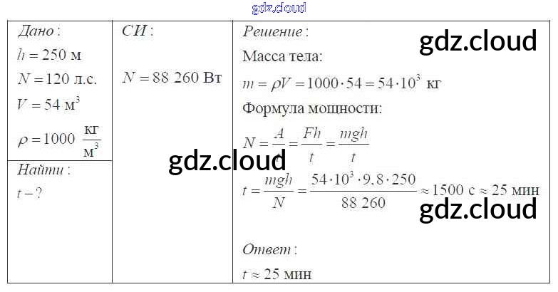 Работа и мощность. Энергия Ответы к 7 классу по Физике 7, 8, 9 класс Сборник задач Перышкин УМК Экзамен