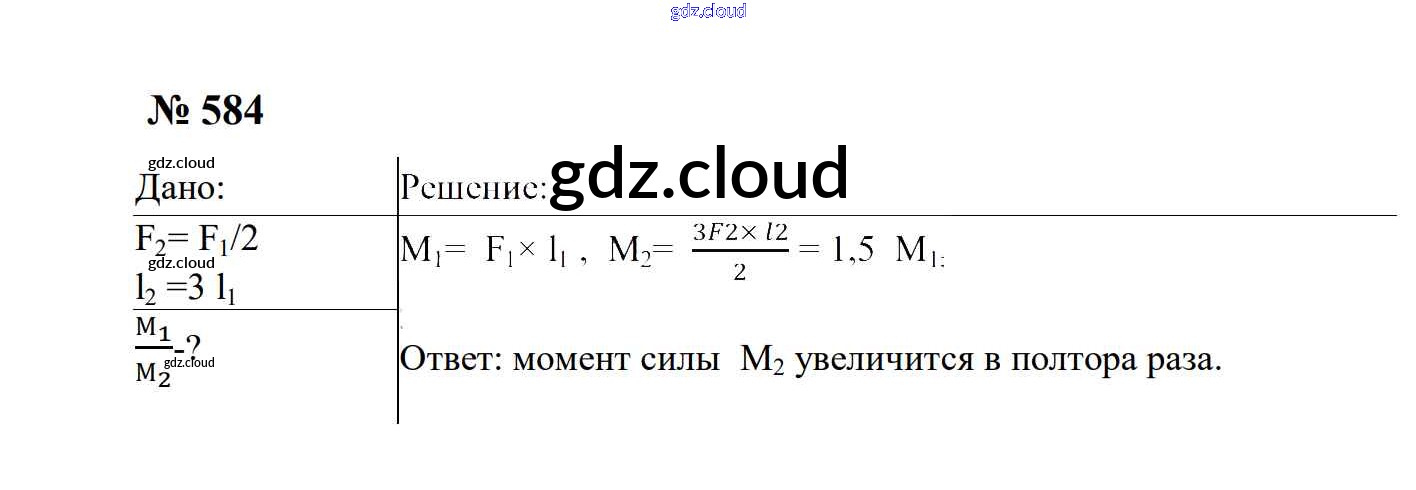 Ответ на задание 584 Сборник задач Физика за 7, 8, 9 (седьмой, восьмой, девятый) класс Перышкин, Лонцова УМК 2016