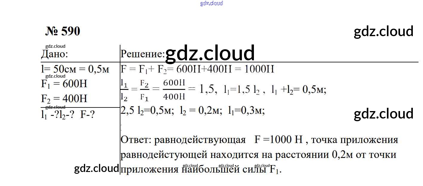 Ответ на задание 590 Сборник задач Физика за 7, 8, 9 (седьмой, восьмой, девятый) класс Перышкин, Лонцова УМК 2016