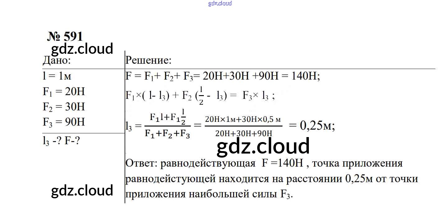 Ответ на задание 591 Сборник задач Физика за 7, 8, 9 (седьмой, восьмой, девятый) класс Перышкин, Лонцова УМК 2016
