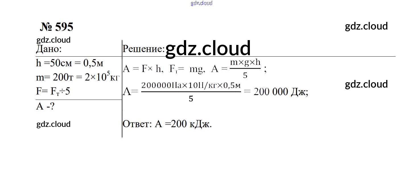 Ответ на задание 595 Сборник задач Физика за 7, 8, 9 (седьмой, восьмой, девятый) класс Перышкин, Лонцова УМК 2016