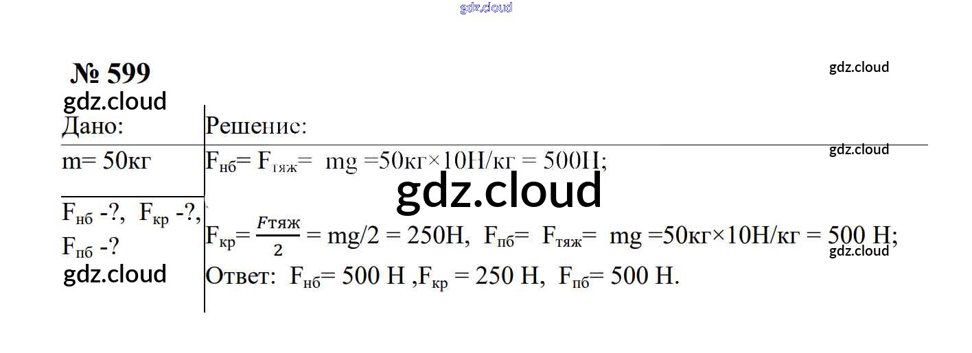 Ответ на задание 599 Сборник задач Физика за 7, 8, 9 (седьмой, восьмой, девятый) класс Перышкин, Лонцова УМК 2016