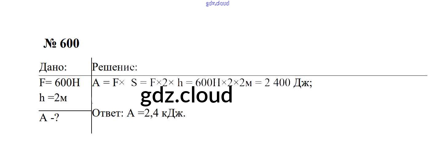 Ответ на задание 600 Сборник задач Физика за 7, 8, 9 (седьмой, восьмой, девятый) класс Перышкин, Лонцова УМК 2016