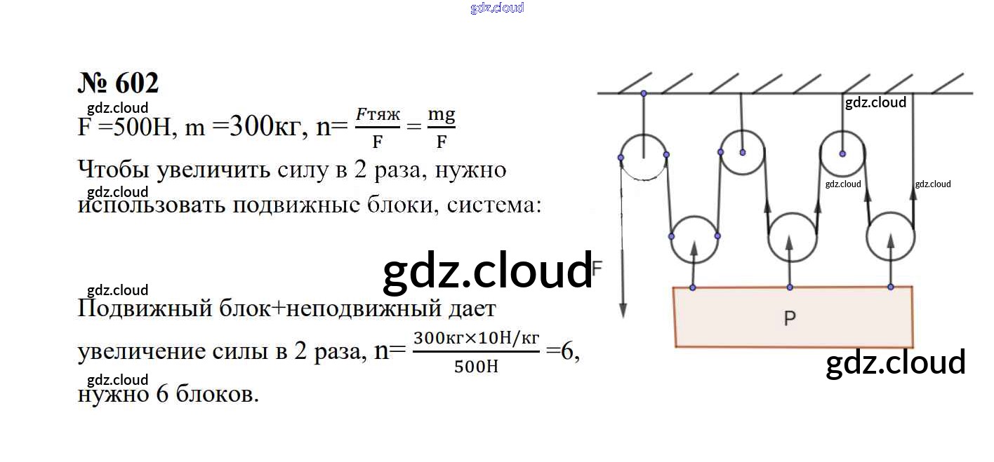 Ответ на задание 602 Сборник задач Физика за 7, 8, 9 (седьмой, восьмой, девятый) класс Перышкин, Лонцова УМК 2016
