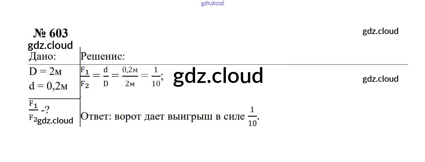 Ответ на задание 603 Сборник задач Физика за 7, 8, 9 (седьмой, восьмой, девятый) класс Перышкин, Лонцова УМК 2016
