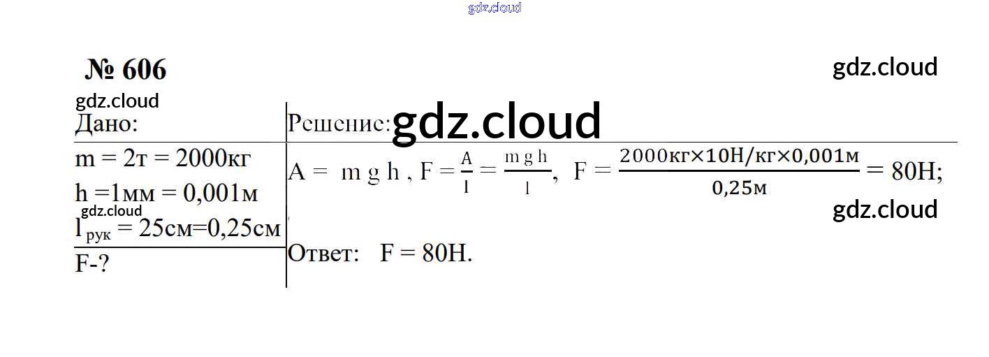 Ответ на задание 606 Сборник задач Физика за 7, 8, 9 (седьмой, восьмой, девятый) класс Перышкин, Лонцова УМК 2016