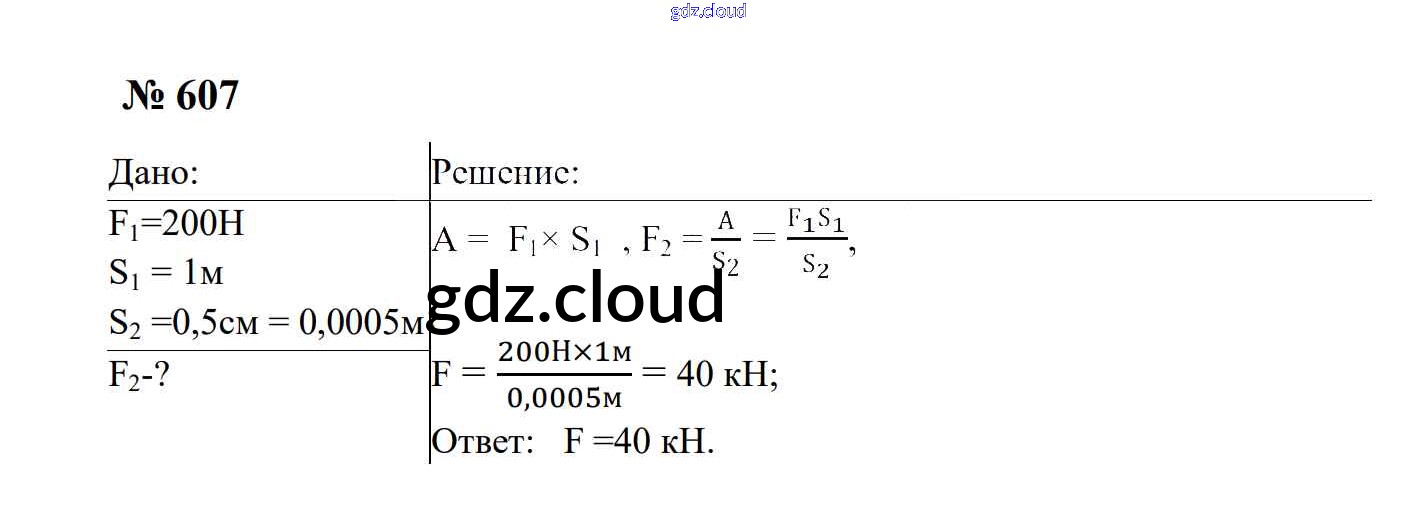 Ответ на задание 607 Сборник задач Физика за 7, 8, 9 (седьмой, восьмой, девятый) класс Перышкин, Лонцова УМК 2016