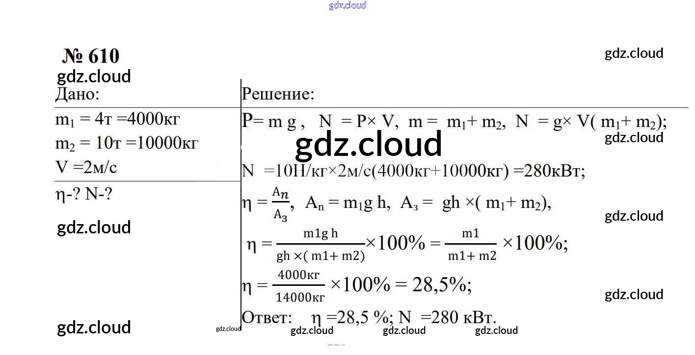 Ответ на задание 610 Сборник задач Физика за 7, 8, 9 (седьмой, восьмой, девятый) класс Перышкин, Лонцова УМК 2016