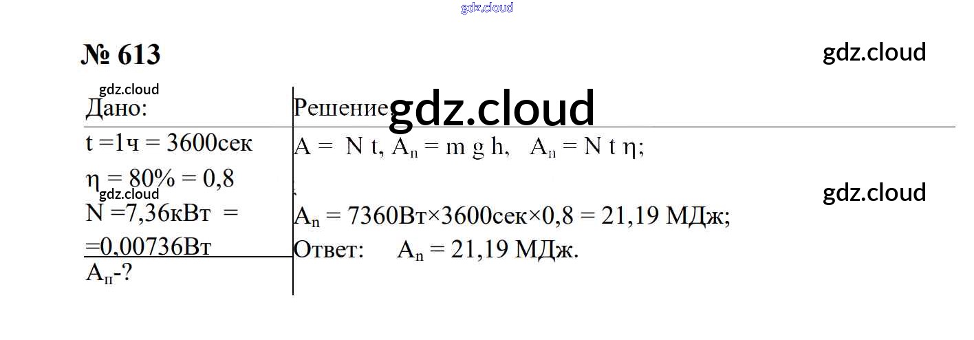 Ответ на задание 613 Сборник задач Физика за 7, 8, 9 (седьмой, восьмой, девятый) класс Перышкин, Лонцова УМК 2016