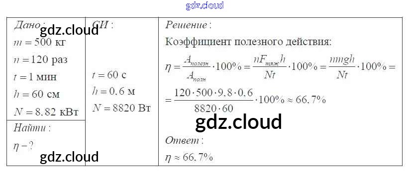 Работа и мощность. Энергия Ответы к 7 классу по Физике 7, 8, 9 класс Сборник задач Перышкин УМК Экзамен