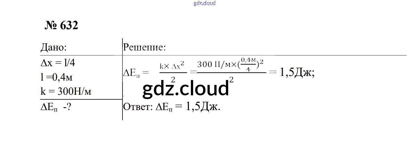 Ответ на задание 632 Сборник задач Физика за 7, 8, 9 (седьмой, восьмой, девятый) класс Перышкин, Лонцова УМК 2016