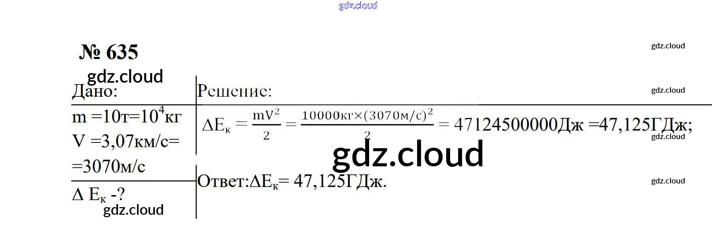 Ответ на задание 635 Сборник задач Физика за 7, 8, 9 (седьмой, восьмой, девятый) класс Перышкин, Лонцова УМК 2016