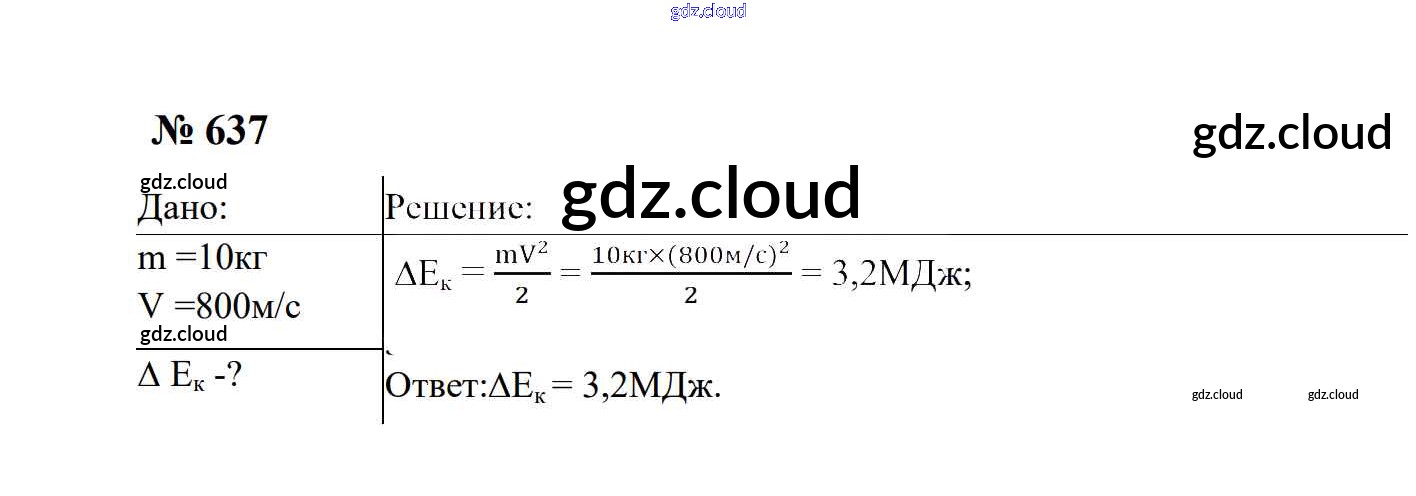 Ответ на задание 637 Сборник задач Физика за 7, 8, 9 (седьмой, восьмой, девятый) класс Перышкин, Лонцова УМК 2016