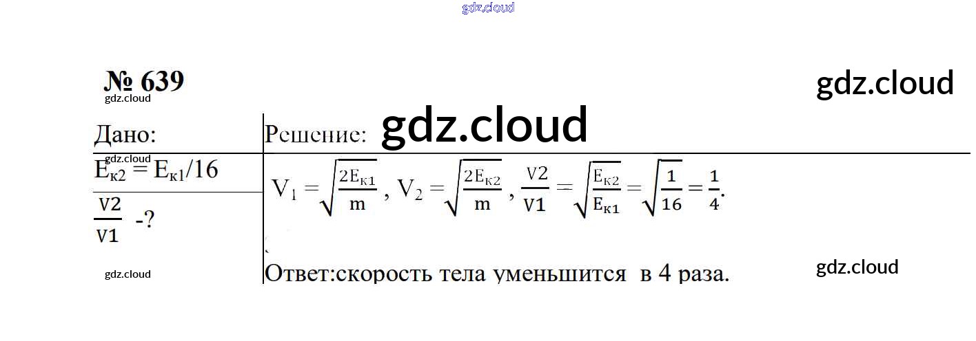 Ответ на задание 639 Сборник задач Физика за 7, 8, 9 (седьмой, восьмой, девятый) класс Перышкин, Лонцова УМК 2016