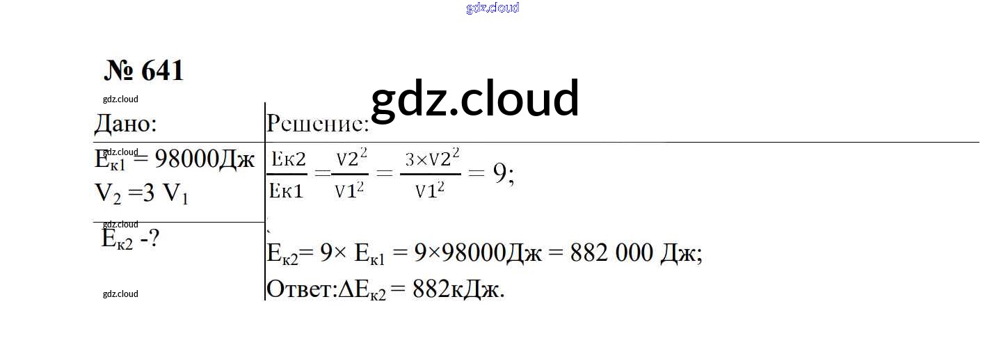 Ответ на задание 641 Сборник задач Физика за 7, 8, 9 (седьмой, восьмой, девятый) класс Перышкин, Лонцова УМК 2016