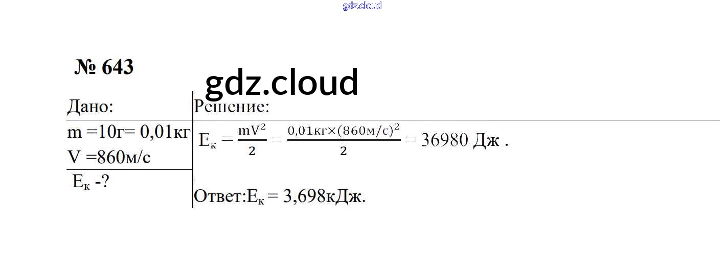 Ответ на задание 643 Сборник задач Физика за 7, 8, 9 (седьмой, восьмой, девятый) класс Перышкин, Лонцова УМК 2016