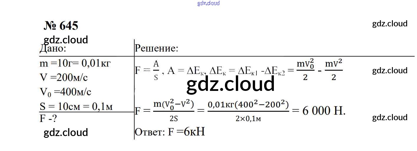 Ответ на задание 645 Сборник задач Физика за 7, 8, 9 (седьмой, восьмой, девятый) класс Перышкин, Лонцова УМК 2016