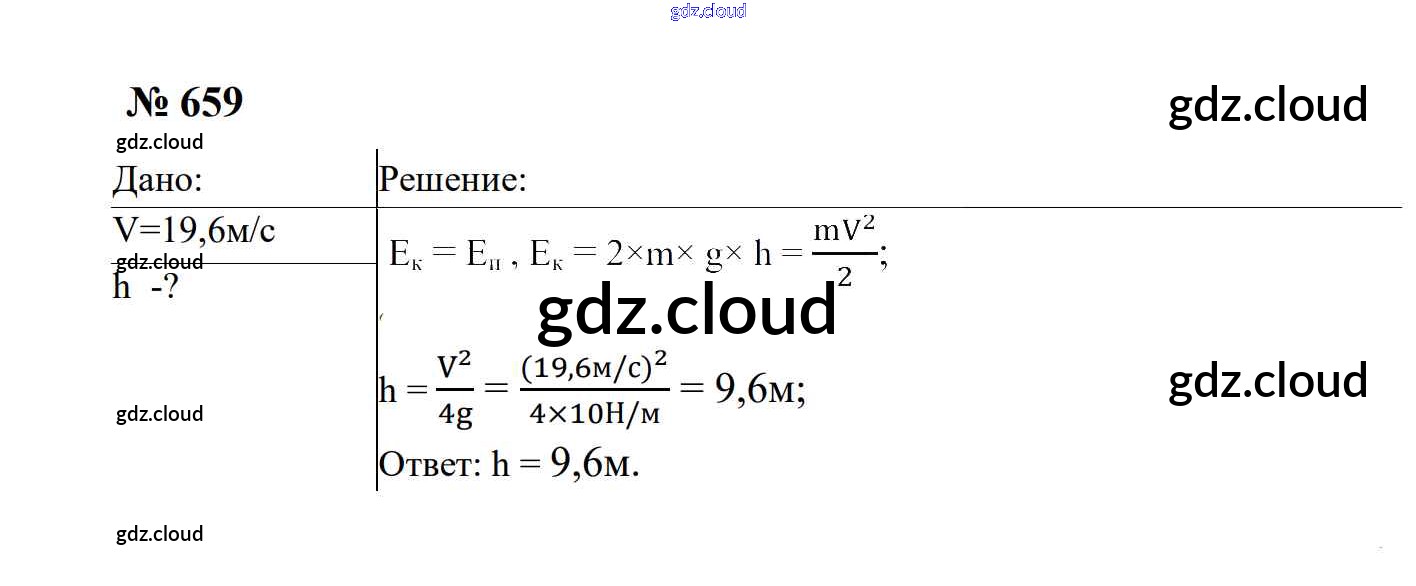 Ответ на задание 659 Сборник задач Физика за 7, 8, 9 (седьмой, восьмой, девятый) класс Перышкин, Лонцова УМК 2016
