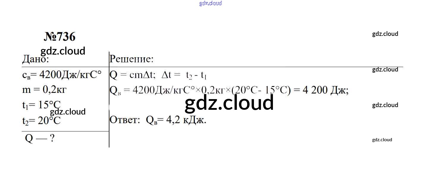 Ответ на задание 736 Сборник задач Физика за 7, 8, 9 (седьмой, восьмой, девятый) класс Перышкин, Лонцова УМК 2016
