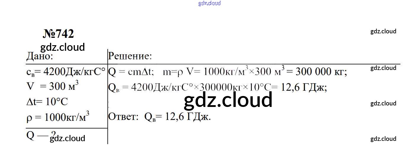 Ответ на задание 742 Сборник задач Физика за 7, 8, 9 (седьмой, восьмой, девятый) класс Перышкин, Лонцова УМК 2016