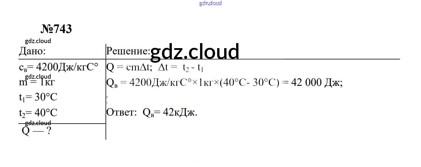Ответ на задание 743 Сборник задач Физика за 7, 8, 9 (седьмой, восьмой, девятый) класс Перышкин, Лонцова УМК 2016
