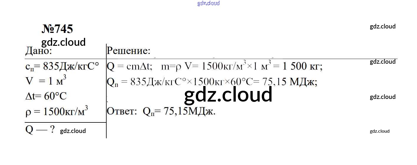 Ответ на задание 745 Сборник задач Физика за 7, 8, 9 (седьмой, восьмой, девятый) класс Перышкин, Лонцова УМК 2016