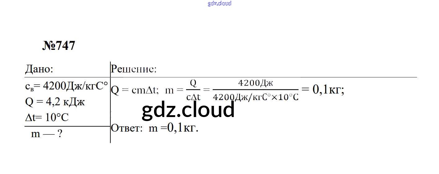Ответ на задание 747 Сборник задач Физика за 7, 8, 9 (седьмой, восьмой, девятый) класс Перышкин, Лонцова УМК 2016