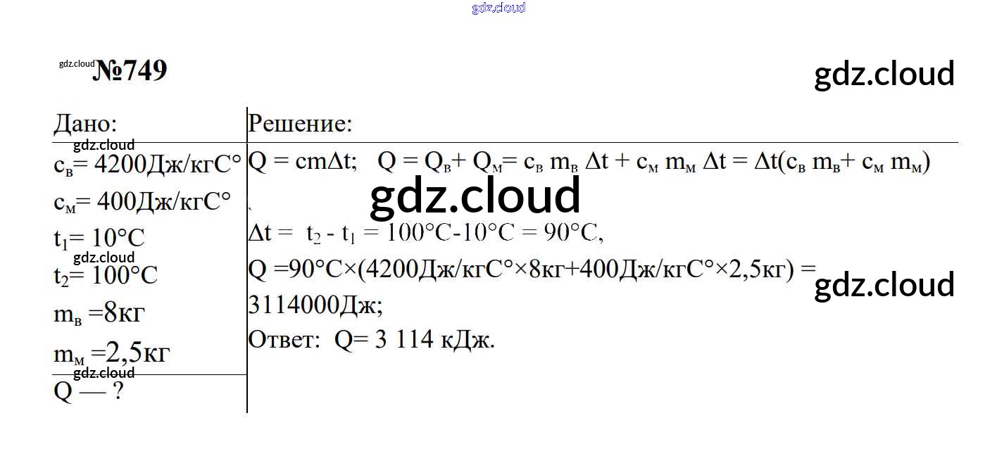 Ответ на задание 749 Сборник задач Физика за 7, 8, 9 (седьмой, восьмой, девятый) класс Перышкин, Лонцова УМК 2016