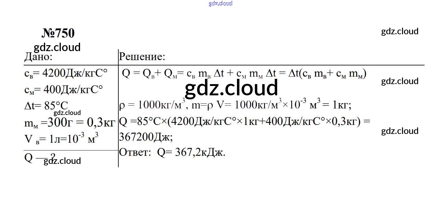Ответ на задание 750 Сборник задач Физика за 7, 8, 9 (седьмой, восьмой, девятый) класс Перышкин, Лонцова УМК 2016