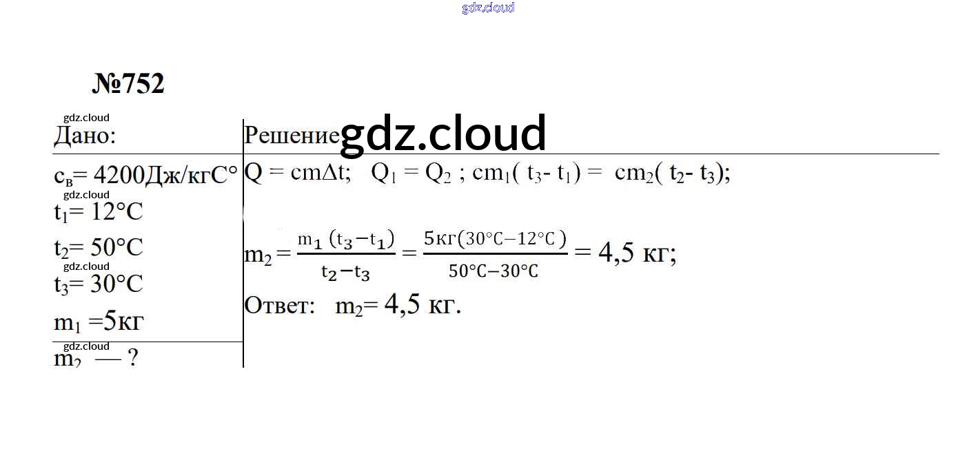 Ответ на задание 752 Сборник задач Физика за 7, 8, 9 (седьмой, восьмой, девятый) класс Перышкин, Лонцова УМК 2016
