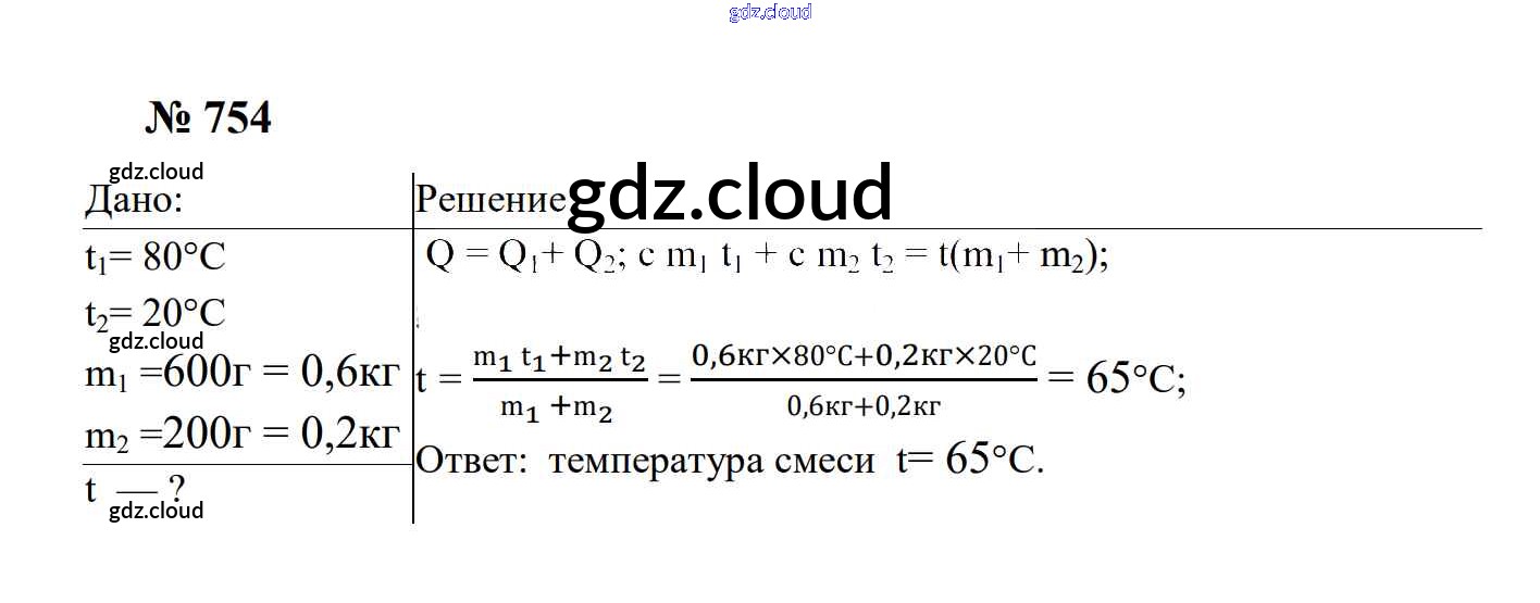 Ответ на задание 754 Сборник задач Физика за 7, 8, 9 (седьмой, восьмой, девятый) класс Перышкин, Лонцова УМК 2016