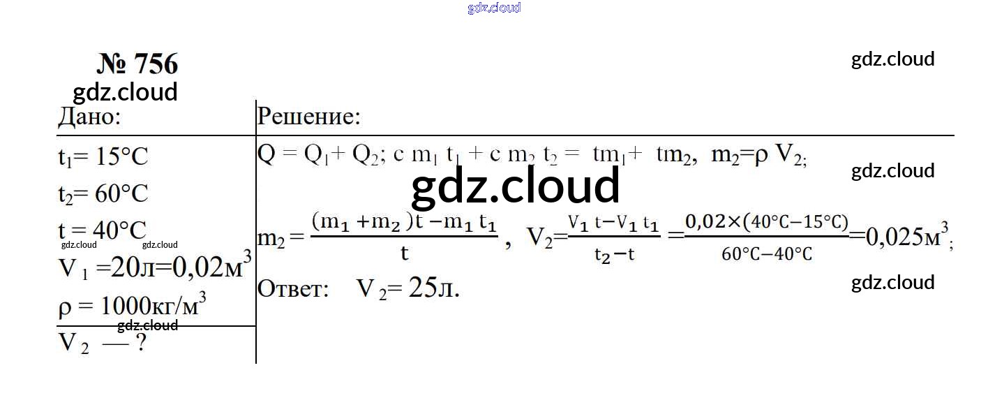 Ответ на задание 756 Сборник задач Физика за 7, 8, 9 (седьмой, восьмой, девятый) класс Перышкин, Лонцова УМК 2016