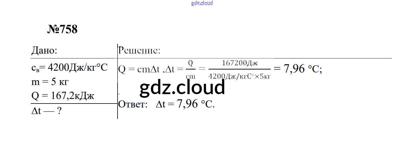 Ответ на задание 758 Сборник задач Физика за 7, 8, 9 (седьмой, восьмой, девятый) класс Перышкин, Лонцова УМК 2016