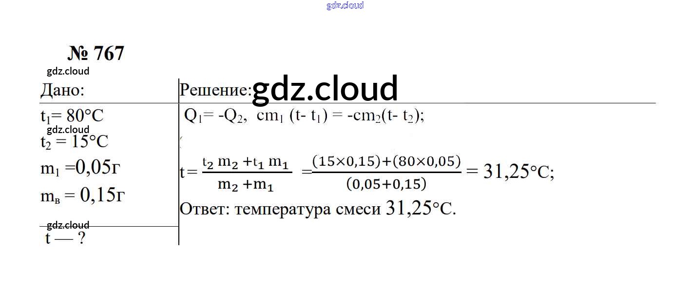 Ответ на задание 767 Сборник задач Физика за 7, 8, 9 (седьмой, восьмой, девятый) класс Перышкин, Лонцова УМК 2016