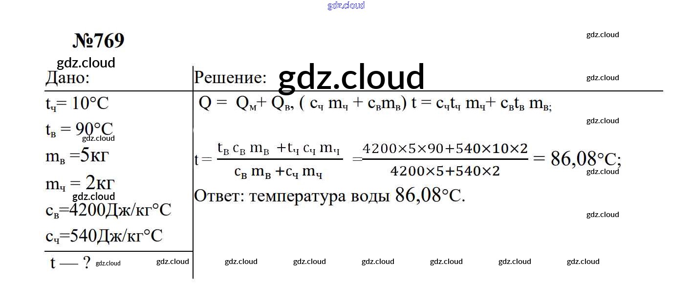 Ответ на задание 769 Сборник задач Физика за 7, 8, 9 (седьмой, восьмой, девятый) класс Перышкин, Лонцова УМК 2016