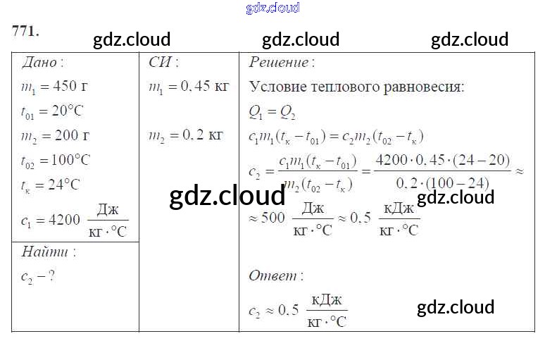 Ответ на задание 771 Сборник задач Физика за 7, 8, 9 (седьмой, восьмой, девятый) класс Перышкин, Лонцова УМК 2016