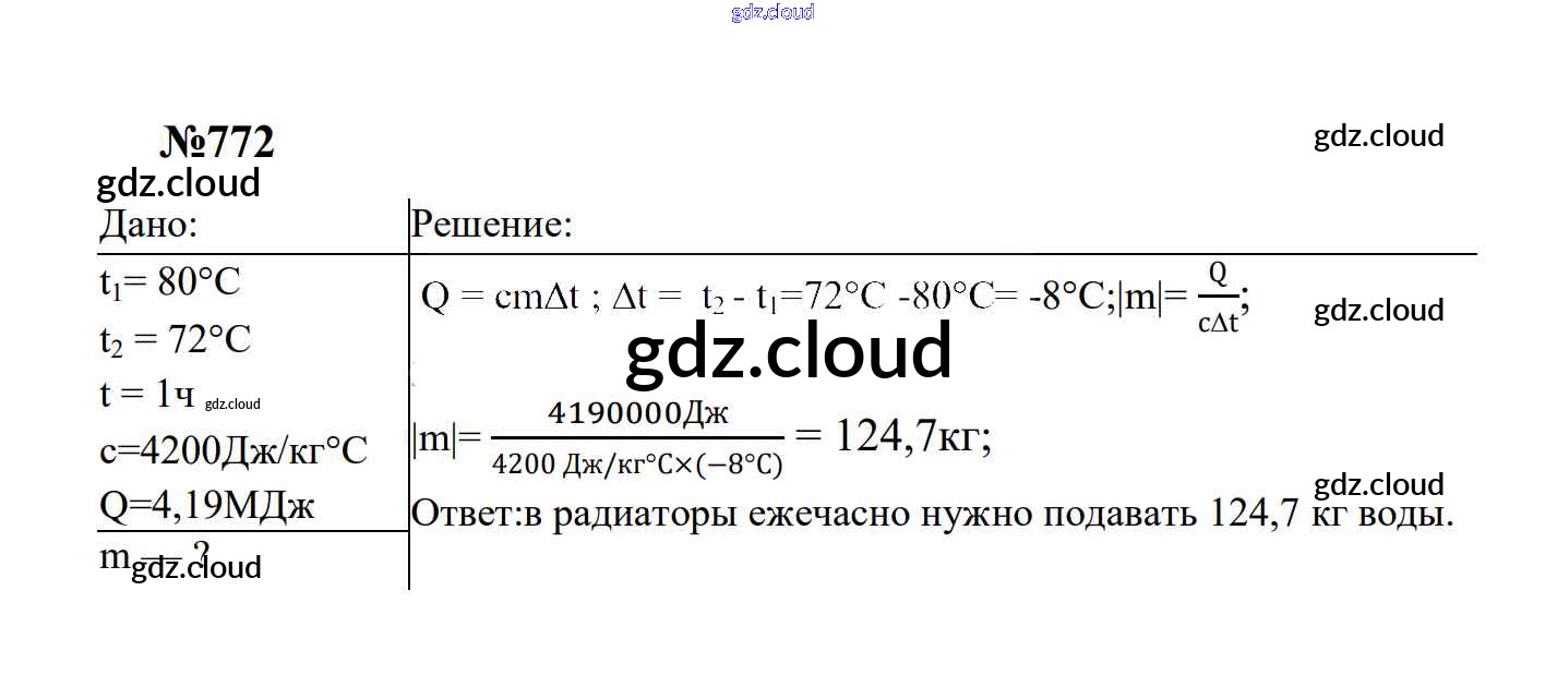 Ответ на задание 772 Сборник задач Физика за 7, 8, 9 (седьмой, восьмой, девятый) класс Перышкин, Лонцова УМК 2016
