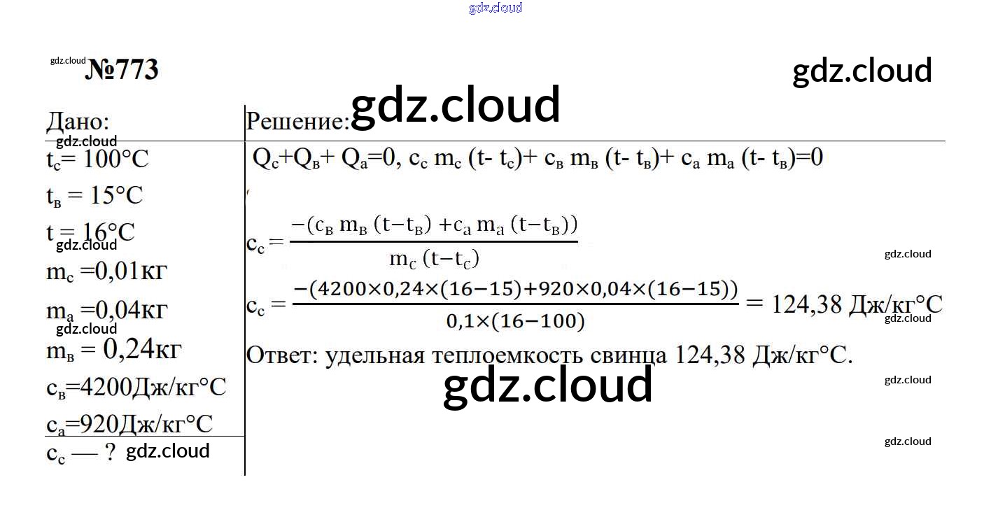 Ответ на задание 773 Сборник задач Физика за 7, 8, 9 (седьмой, восьмой, девятый) класс Перышкин, Лонцова УМК 2016