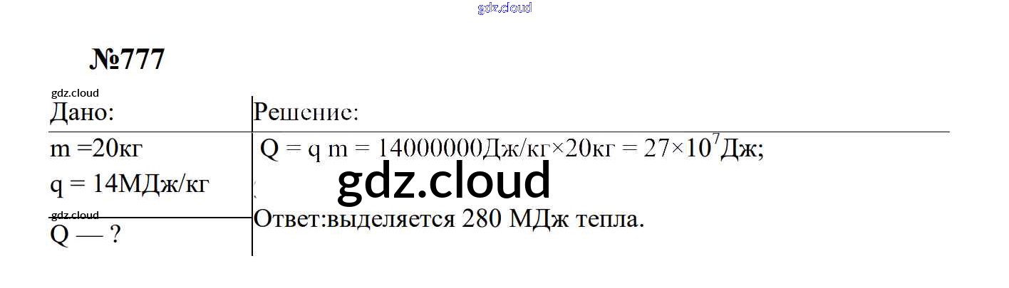 Ответ на задание 777 Сборник задач Физика за 7, 8, 9 (седьмой, восьмой, девятый) класс Перышкин, Лонцова УМК 2016