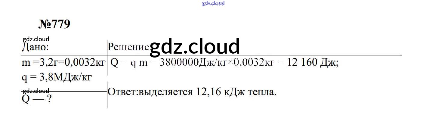 Ответ на задание 779 Сборник задач Физика за 7, 8, 9 (седьмой, восьмой, девятый) класс Перышкин, Лонцова УМК 2016