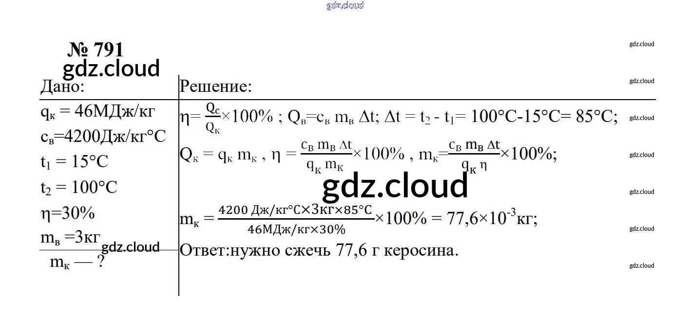 Ответ на задание 791 Сборник задач Физика за 7, 8, 9 (седьмой, восьмой, девятый) класс Перышкин, Лонцова УМК 2016