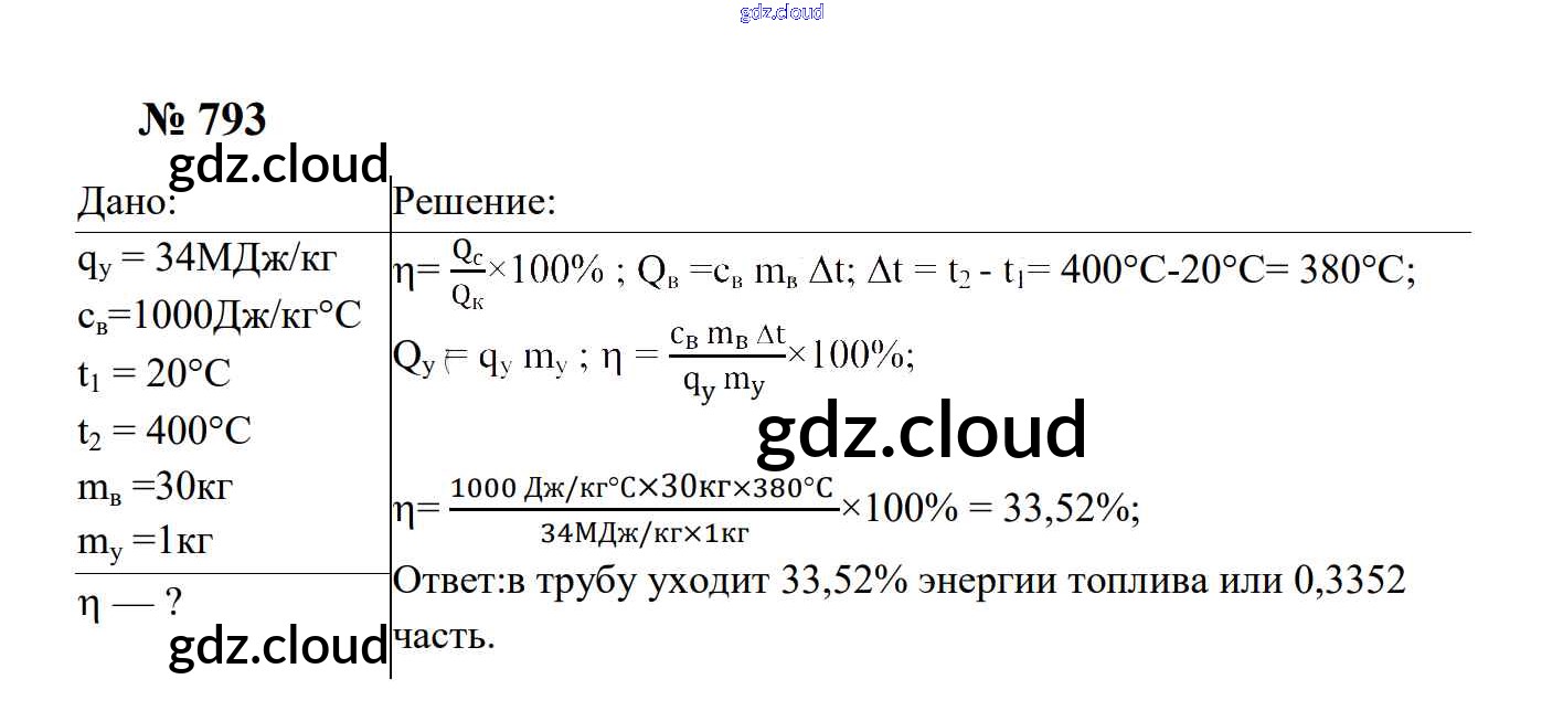 Ответ на задание 793 Сборник задач Физика за 7, 8, 9 (седьмой, восьмой, девятый) класс Перышкин, Лонцова УМК 2016