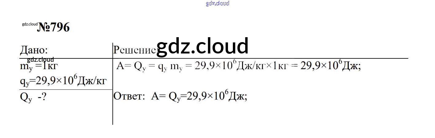 Ответ на задание 796 Сборник задач Физика за 7, 8, 9 (седьмой, восьмой, девятый) класс Перышкин, Лонцова УМК 2016