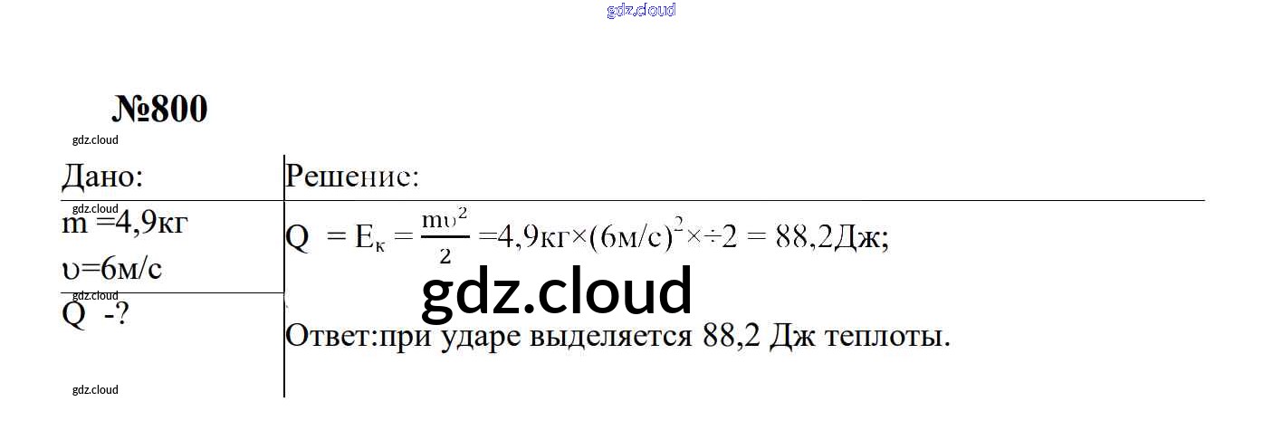 Ответ на задание 800 Сборник задач Физика за 7, 8, 9 (седьмой, восьмой, девятый) класс Перышкин, Лонцова УМК 2016